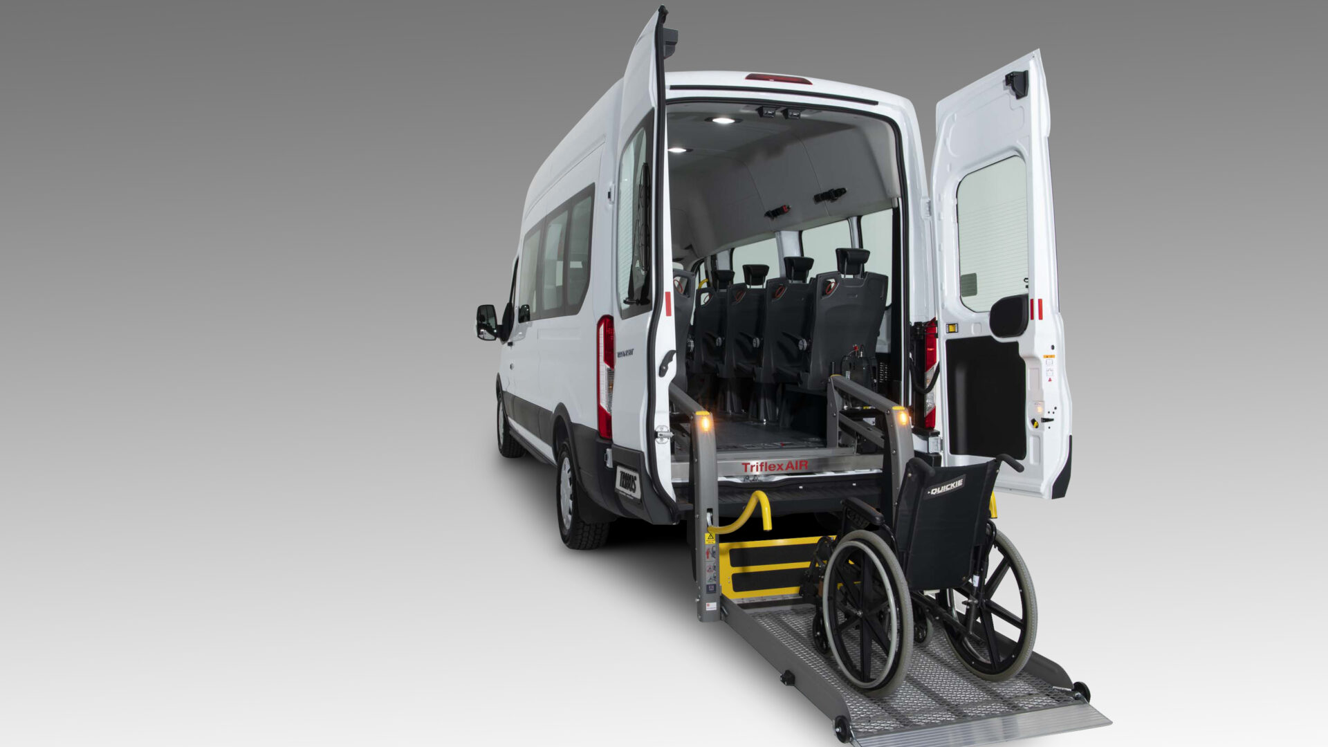 The TriflexAIR seat folds and swivels for a flexible layout, making it easy to transport different passenger groups throughout the day.